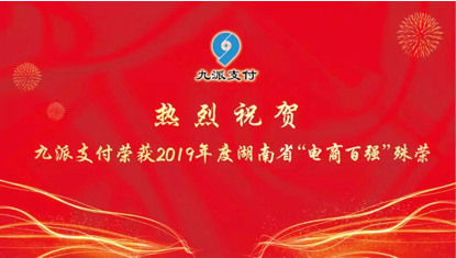 2019年12月26日,湖南省商务厅基于已认定的湖南省电子商务企业和示范企业,参考“湖南省电子商务统计监测管理系统”集中建库的相关统计监测数据,并征求各市州意见,择优筛选了2019年度湖南省“电商百强”。九派支付作为湖南省产业互联网领域的优秀企业,此次荣获2019年度湖南省“电商百强”称号。九派支付能获得此殊荣,正是湖南省商务厅对九派支付深耕行业多年取得成绩的最好认可。未来,九派支付将会不断突破自我,以崭新的面貌在电商领域再创新高。